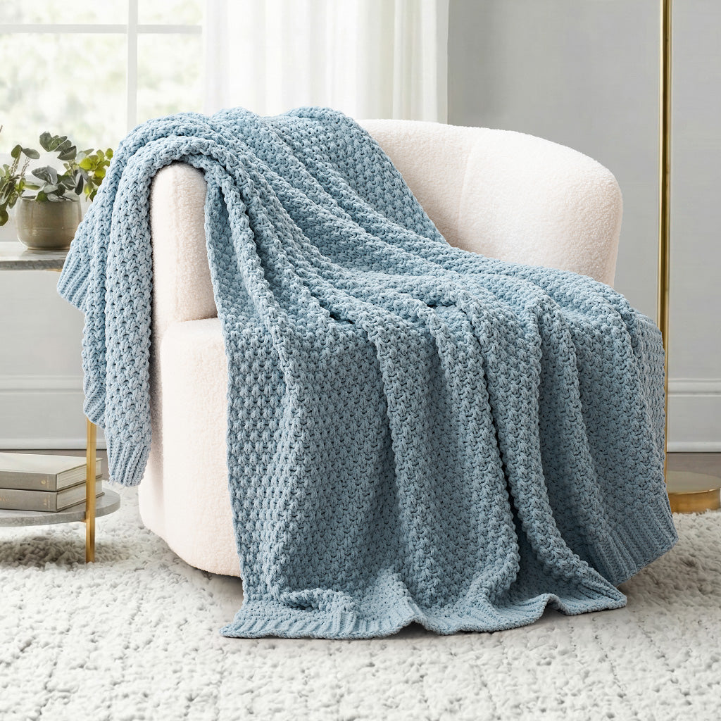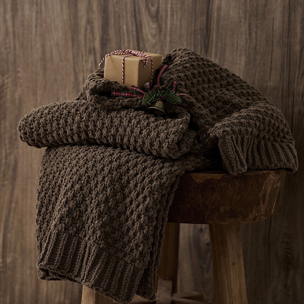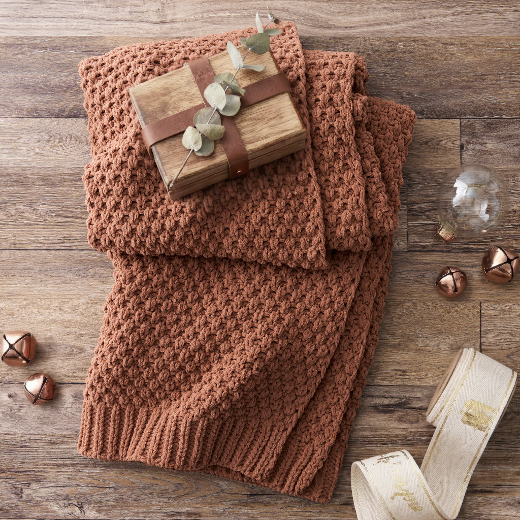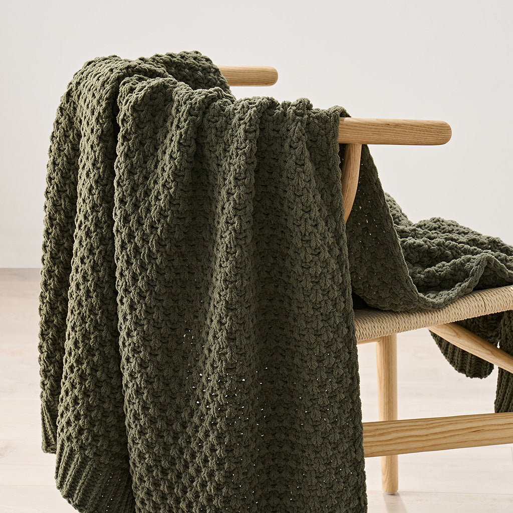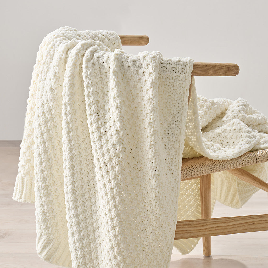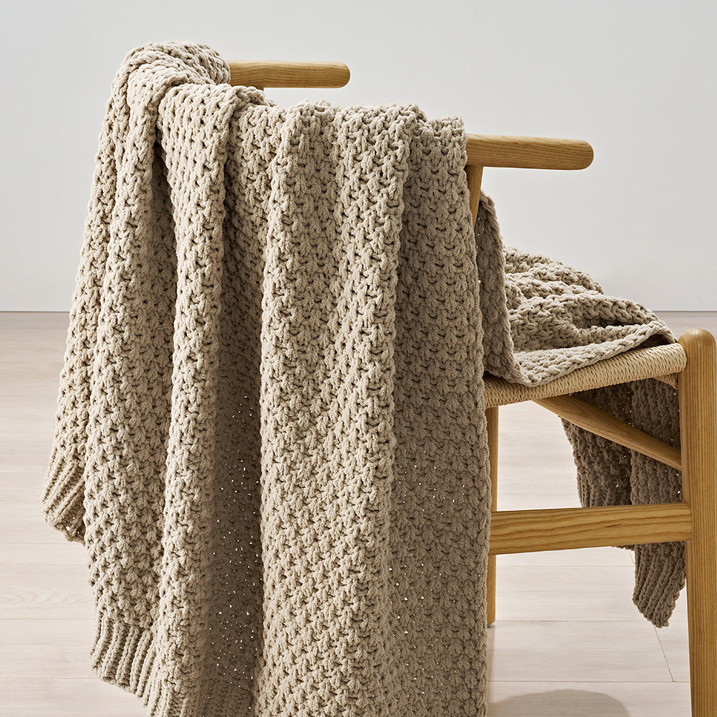 Chunky Moss Stitch Chenille Knit Throw