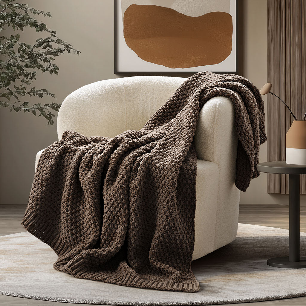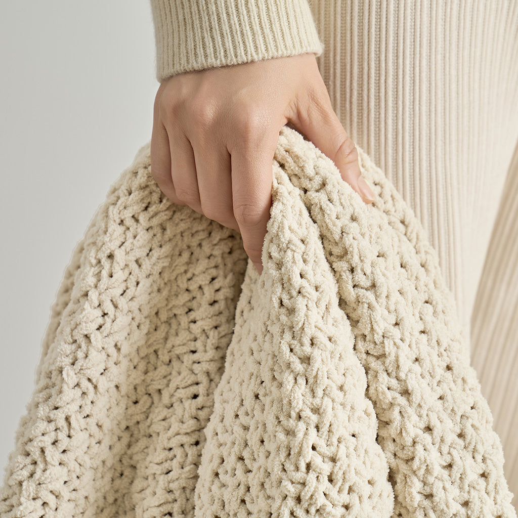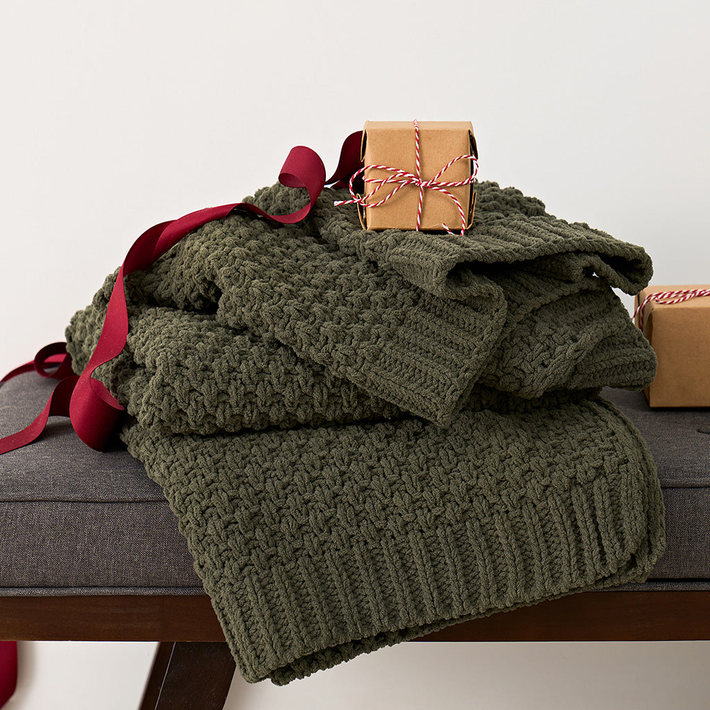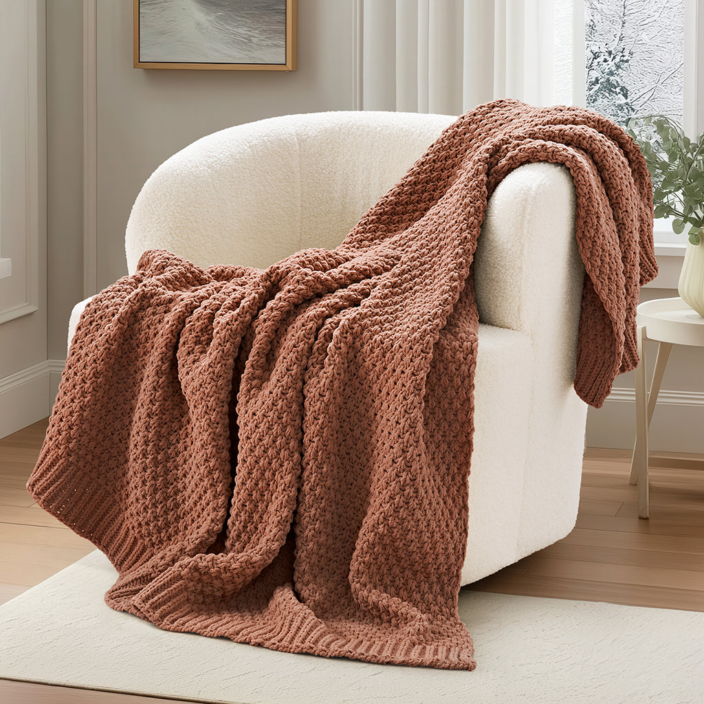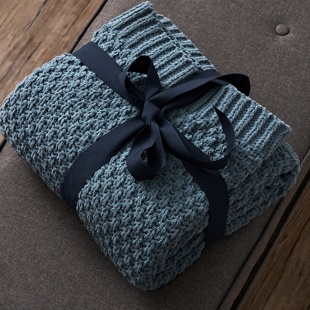 Chunky Moss Stitch Chenille Knit Throw