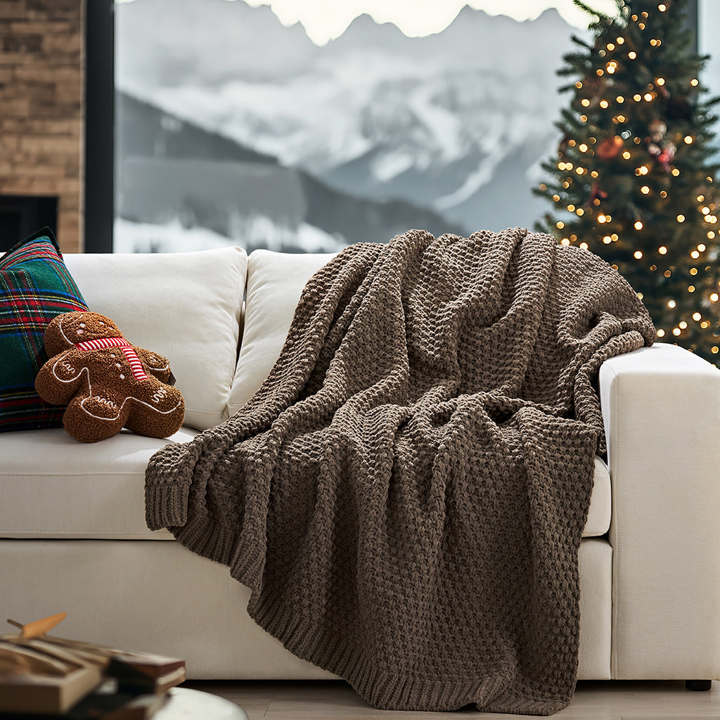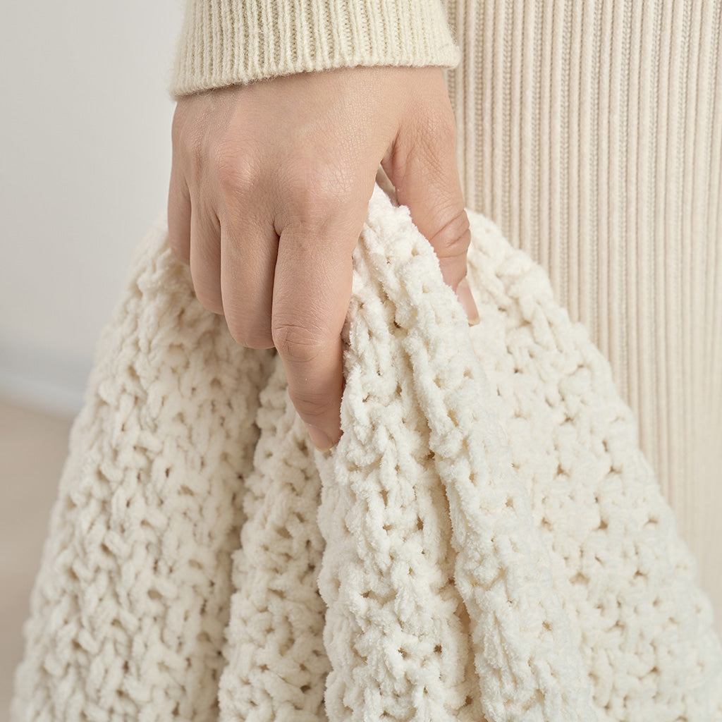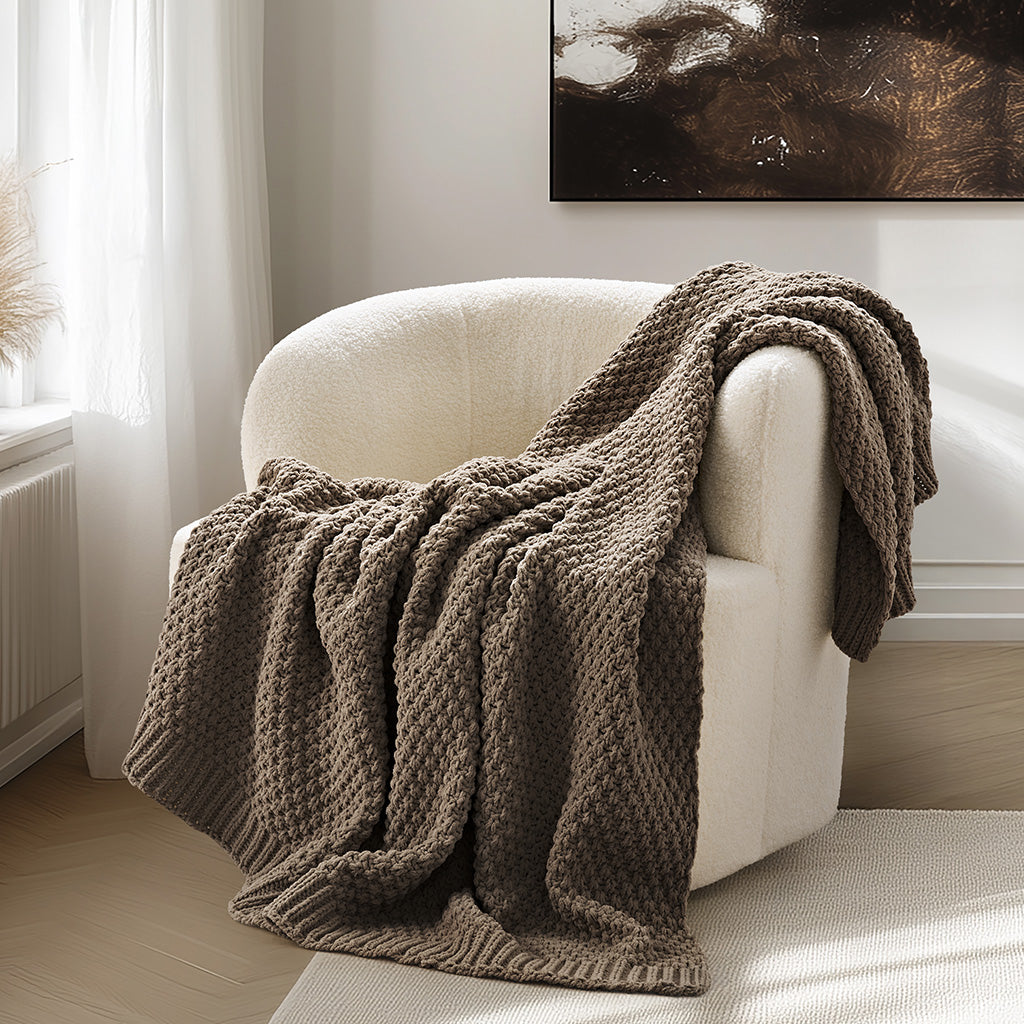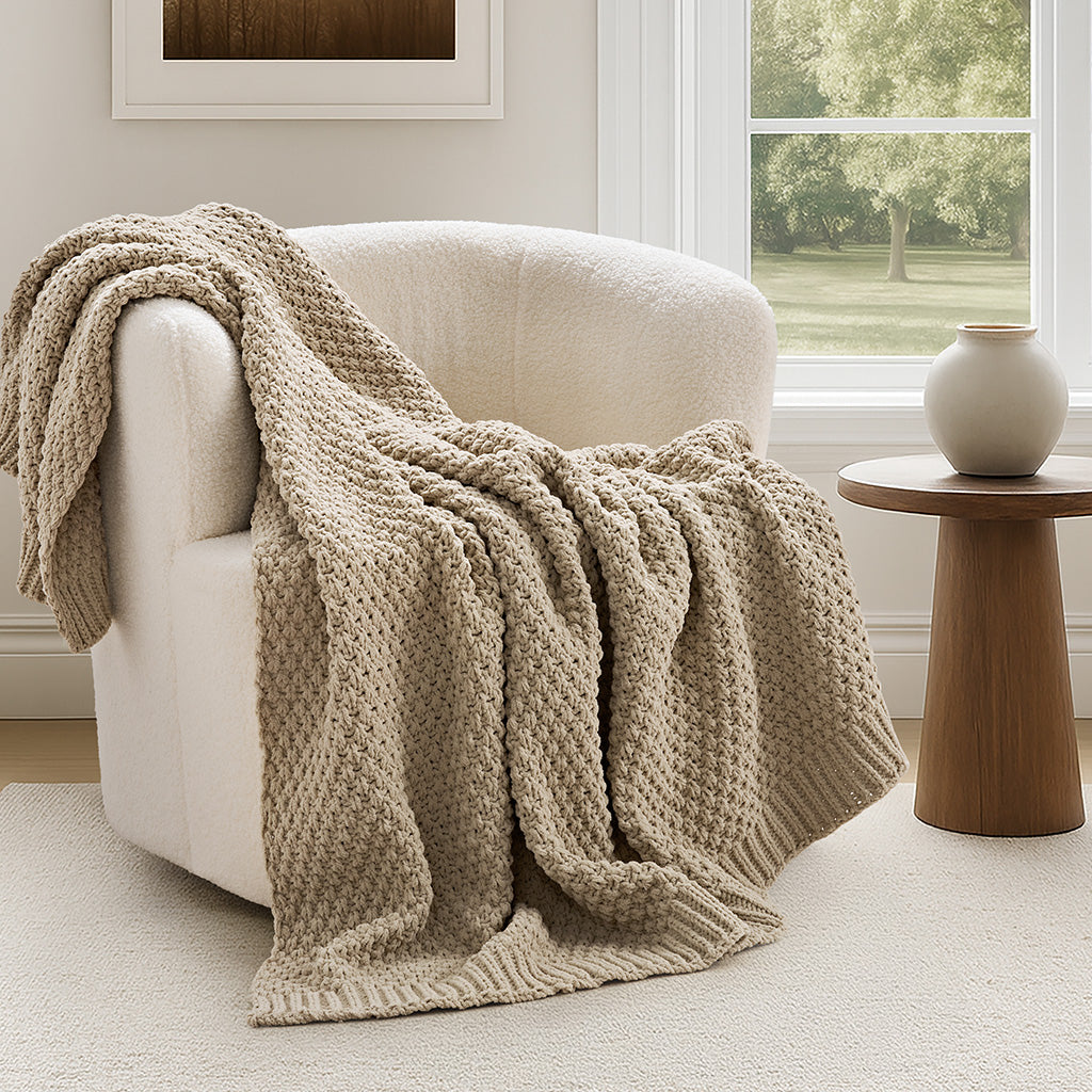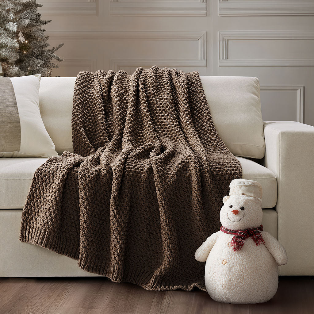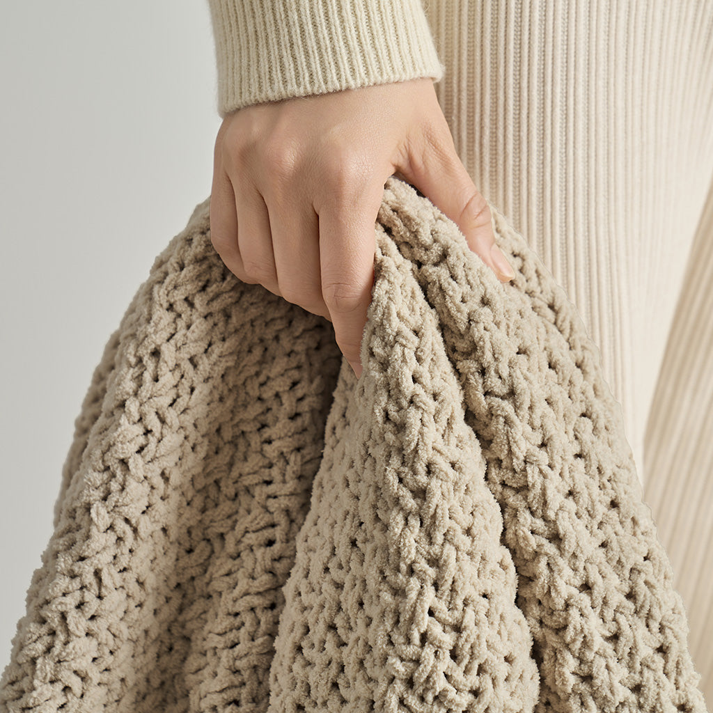 Chunky Moss Stitch Chenille Knit Throw
