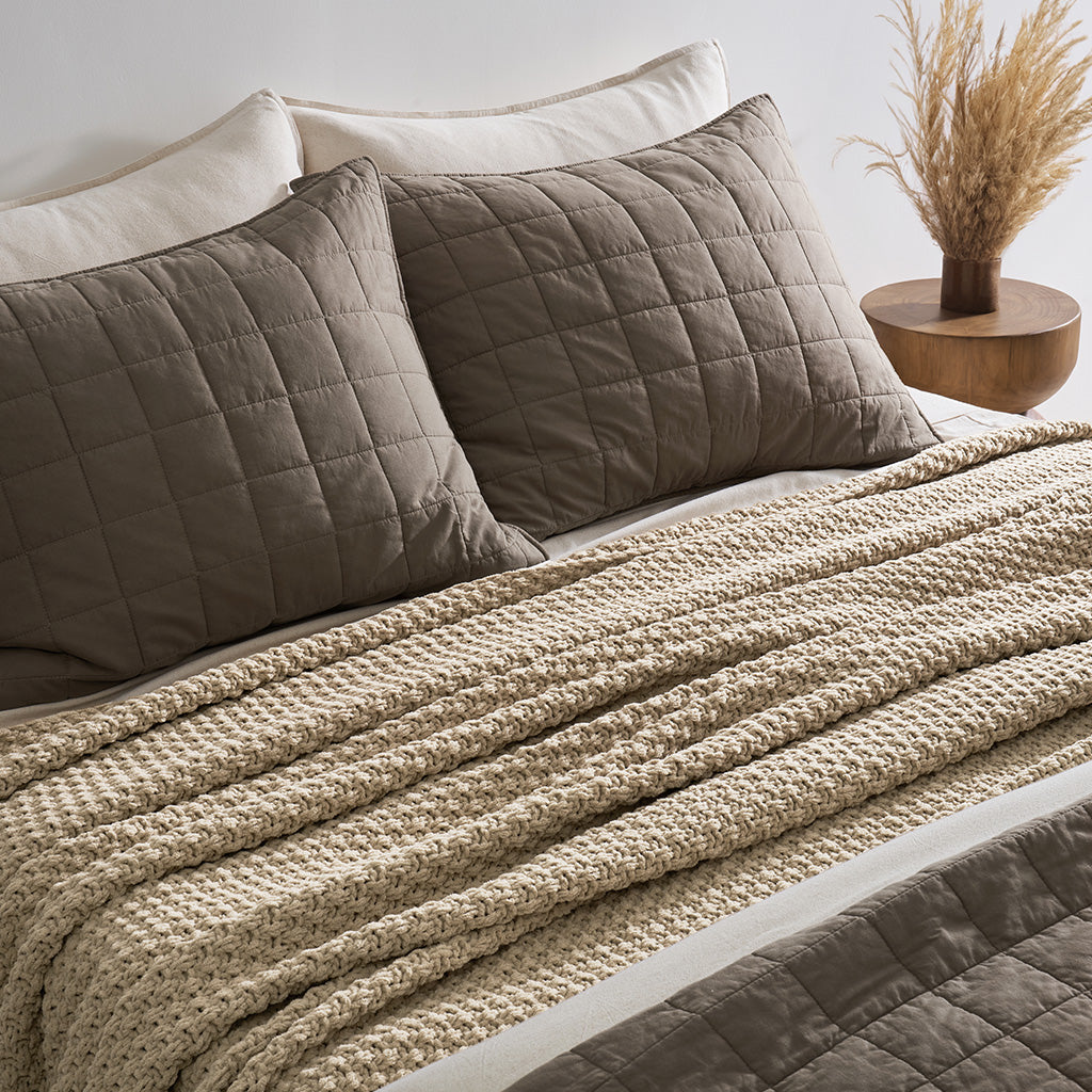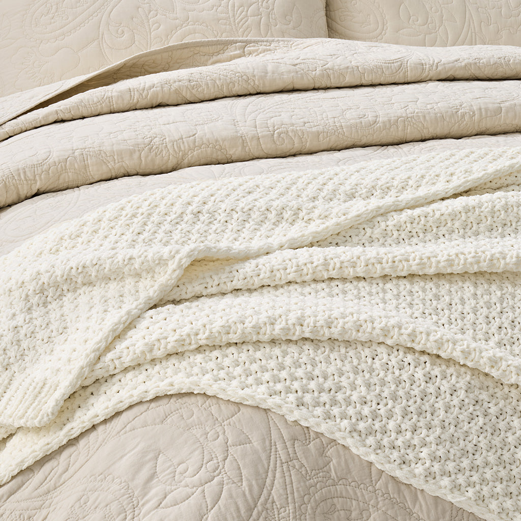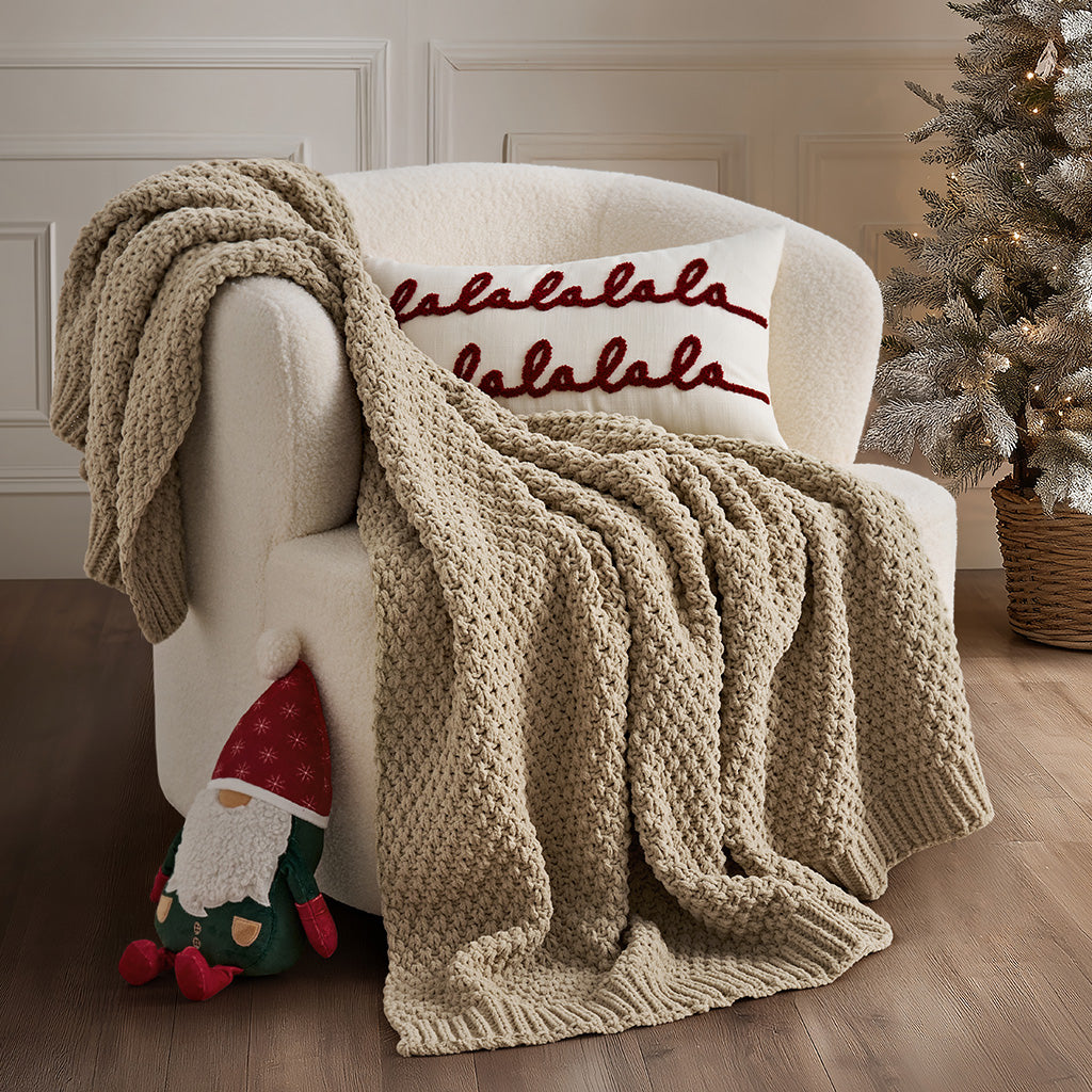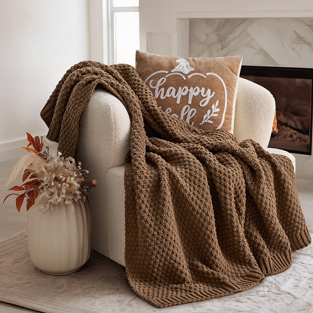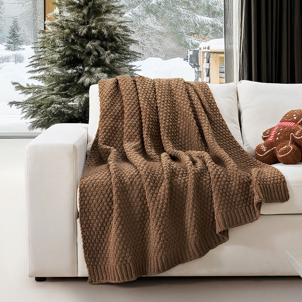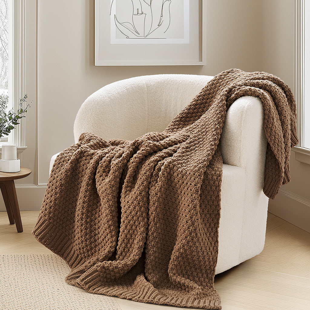 Chunky Moss Stitch Chenille Knit Throw