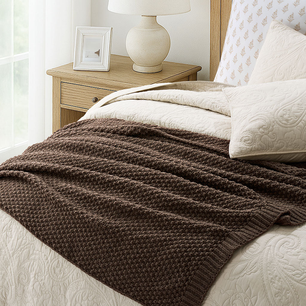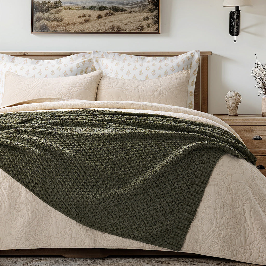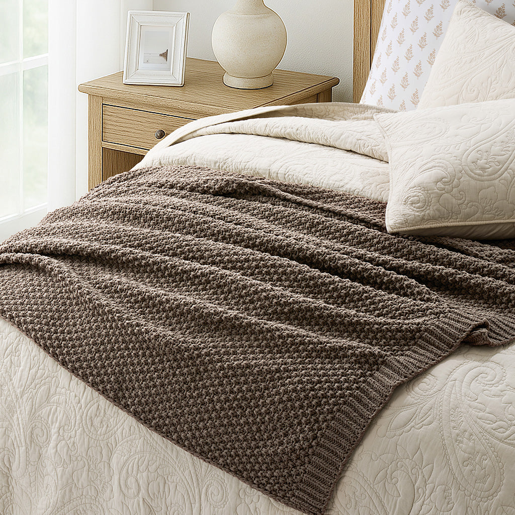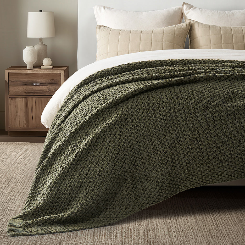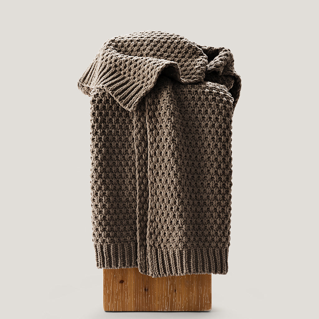 - Crafted with intricate moss stitching for a cozy yet elegant texture.