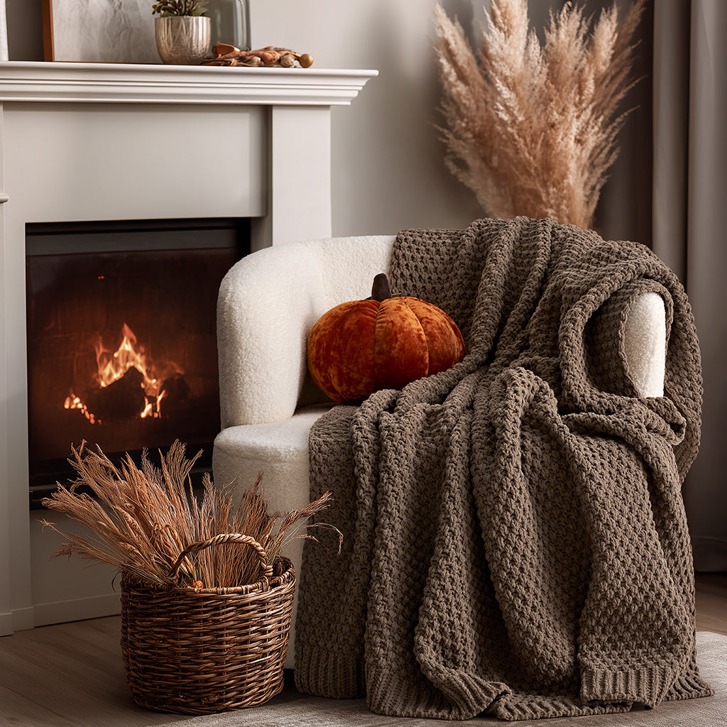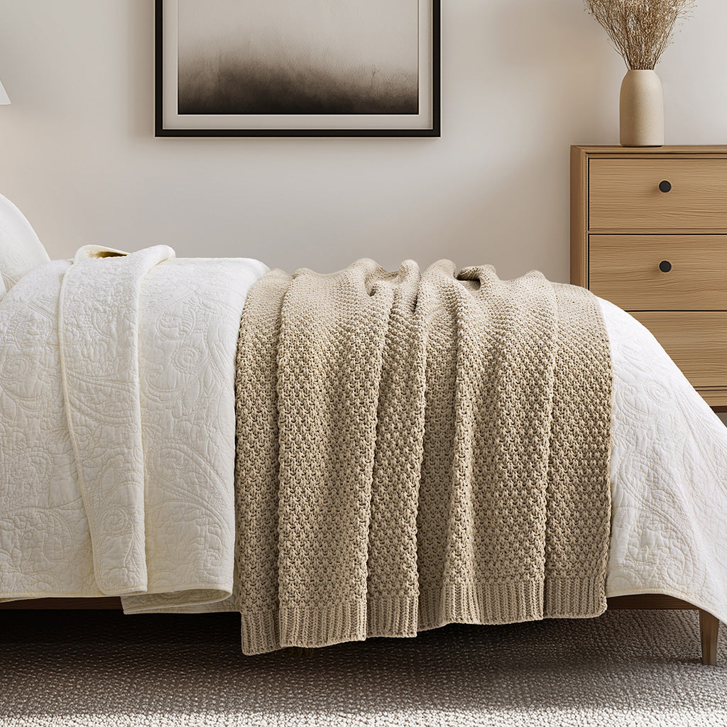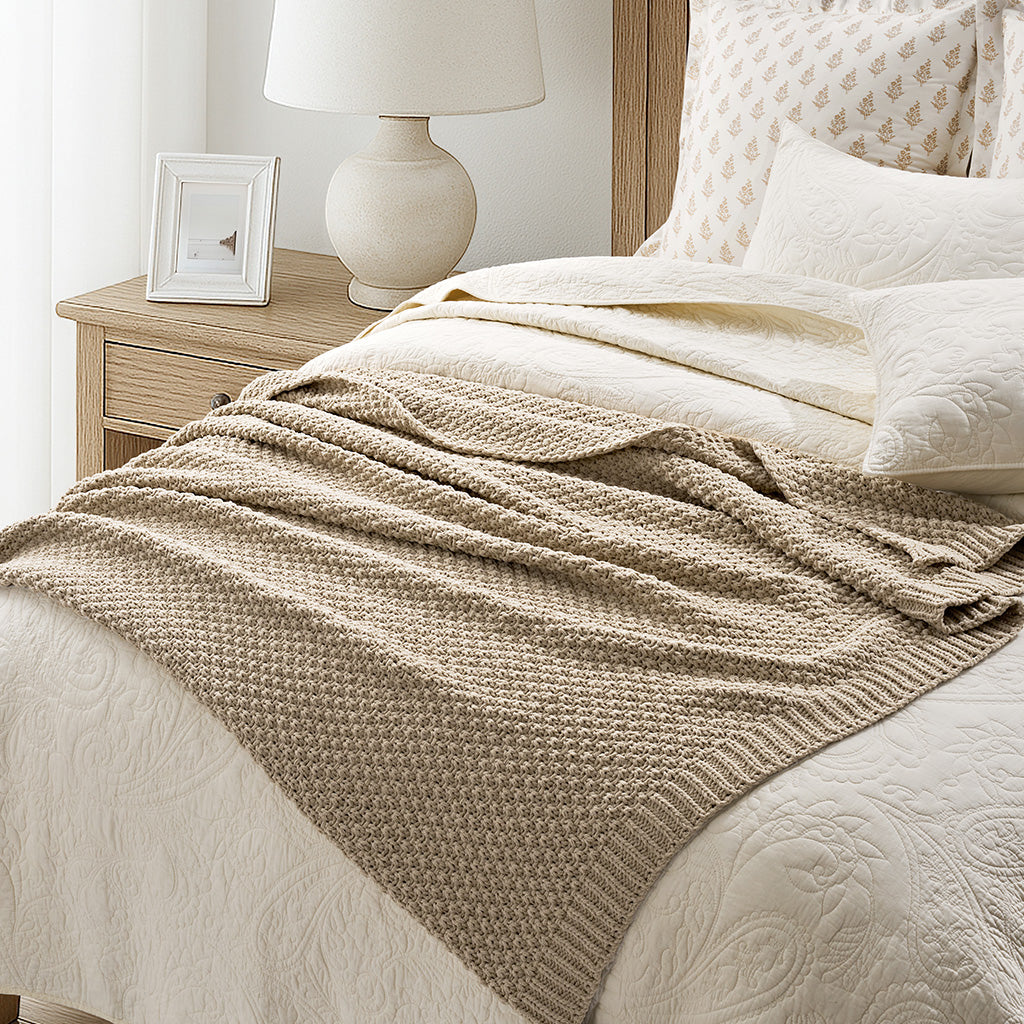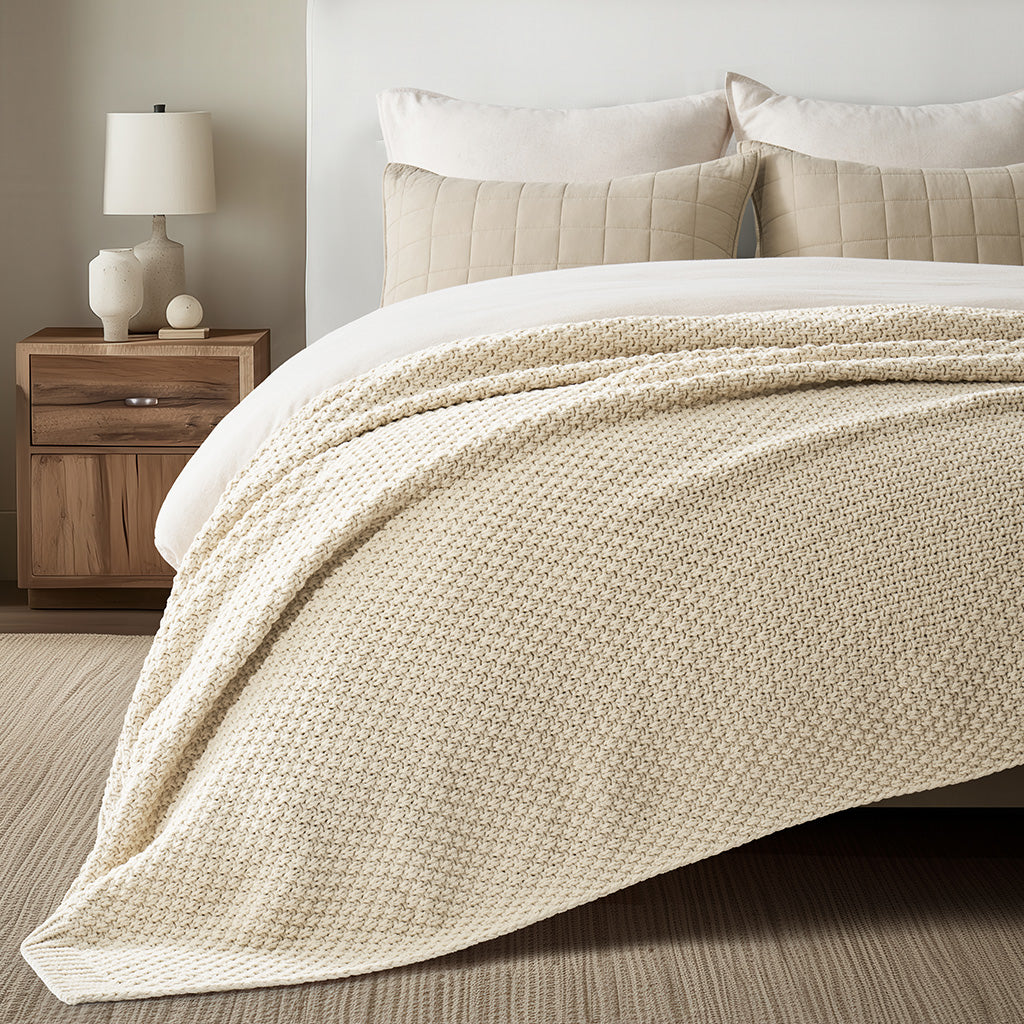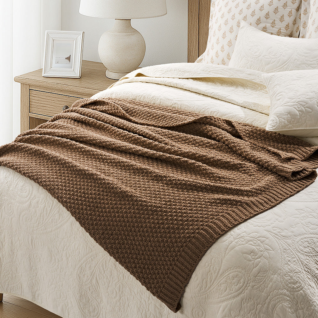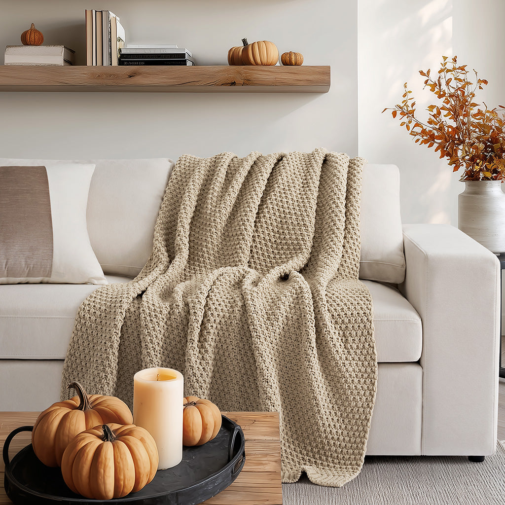 - Crafted with intricate moss stitching for a cozy yet elegant texture.