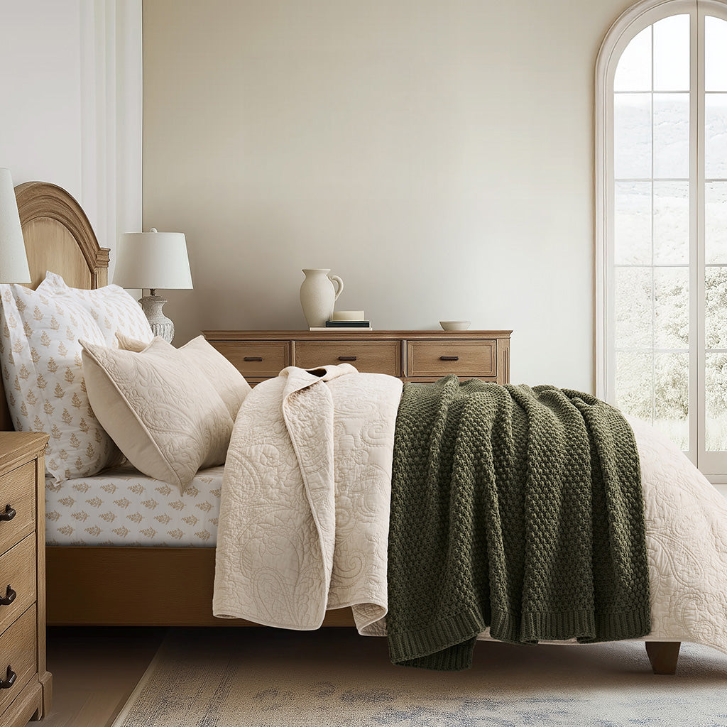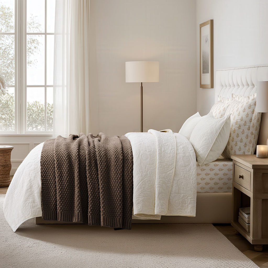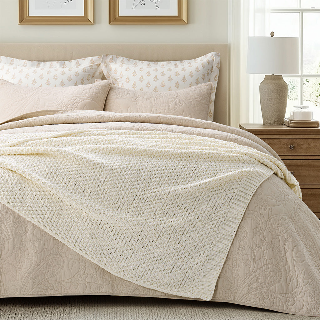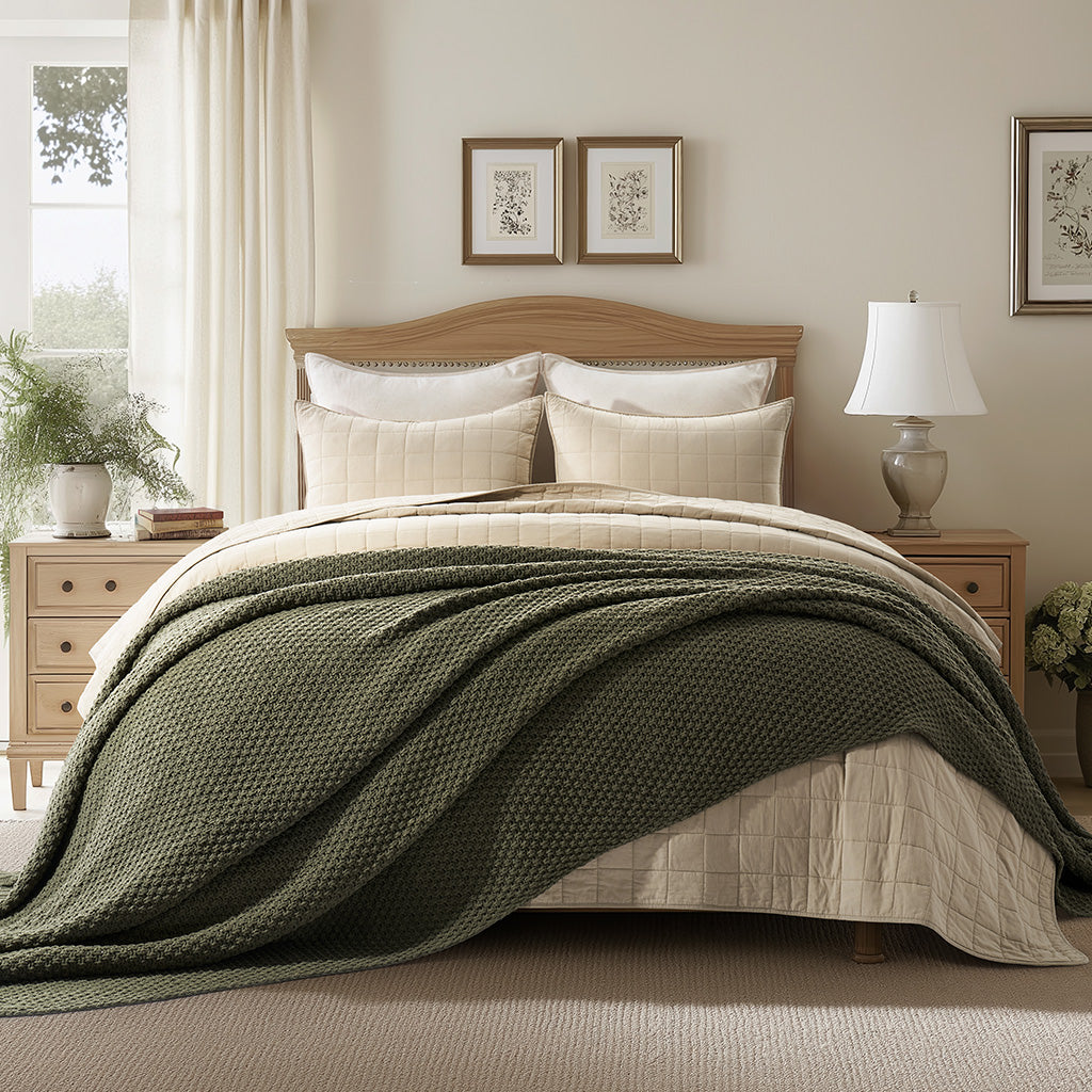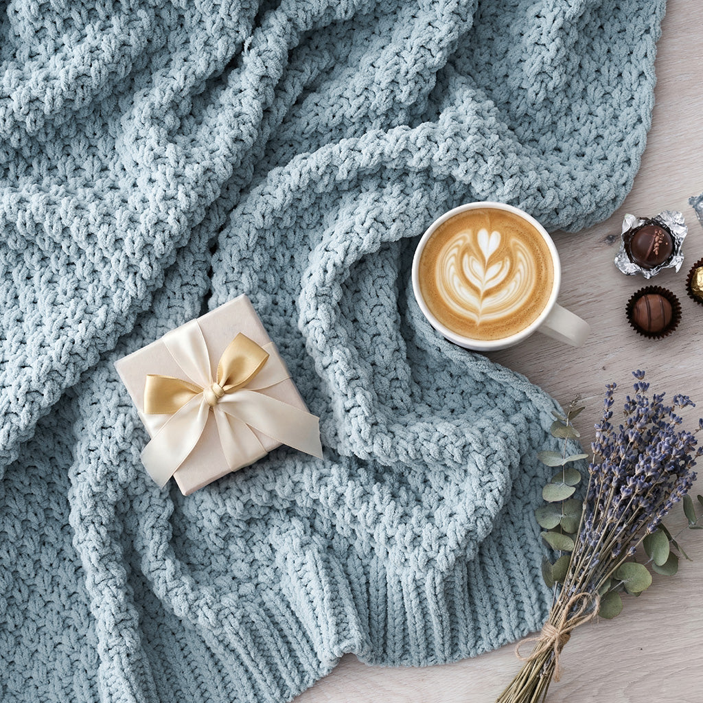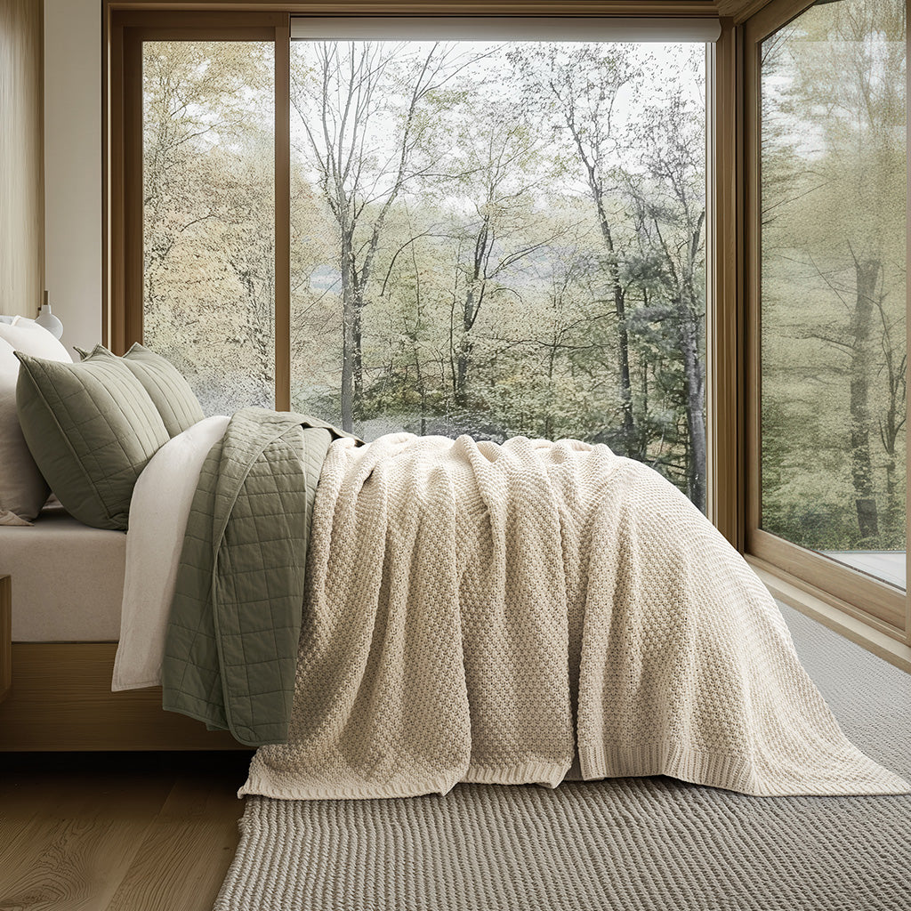 - Crafted with intricate moss stitching for a cozy yet elegant texture.