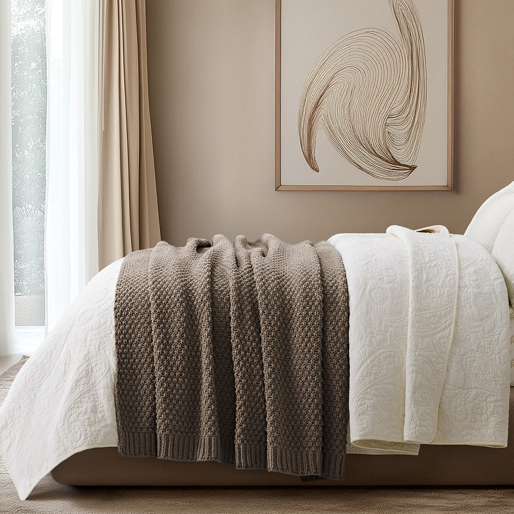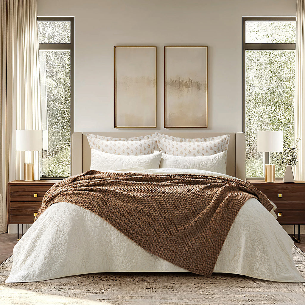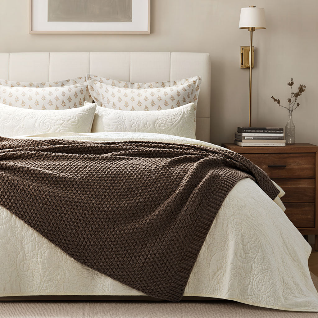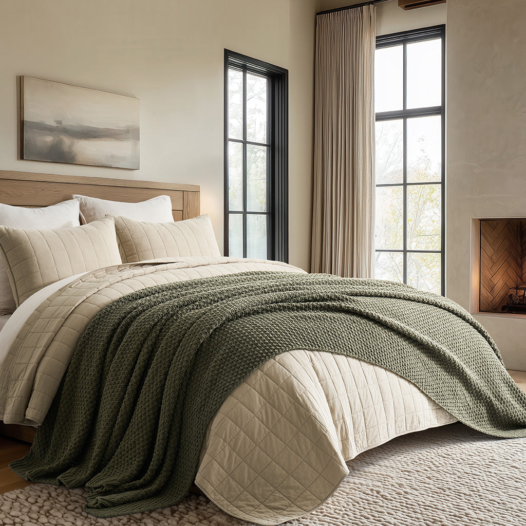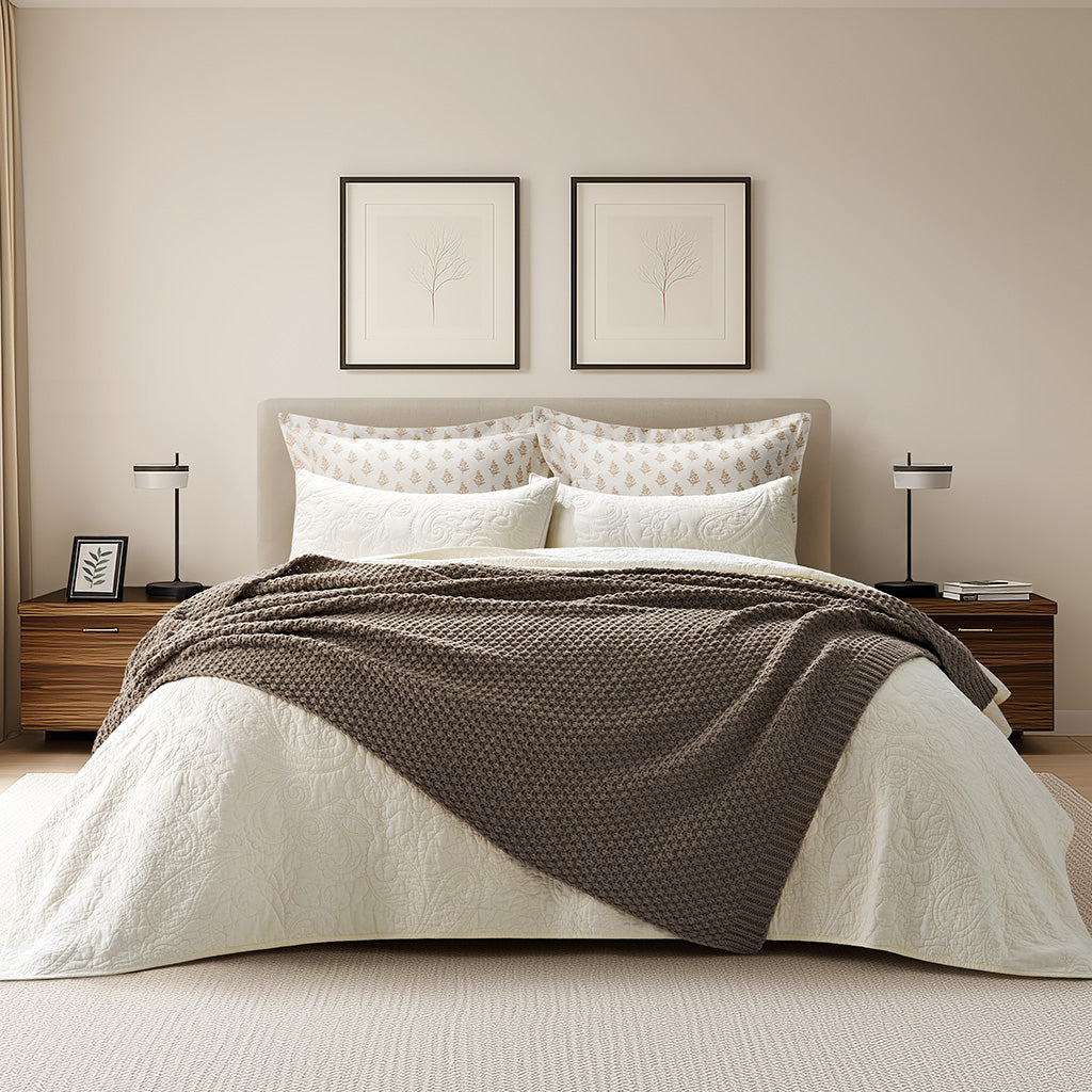 - Crafted with intricate moss stitching for a cozy yet elegant texture.