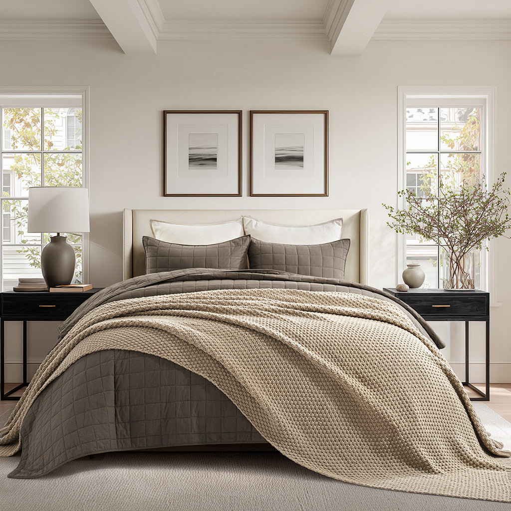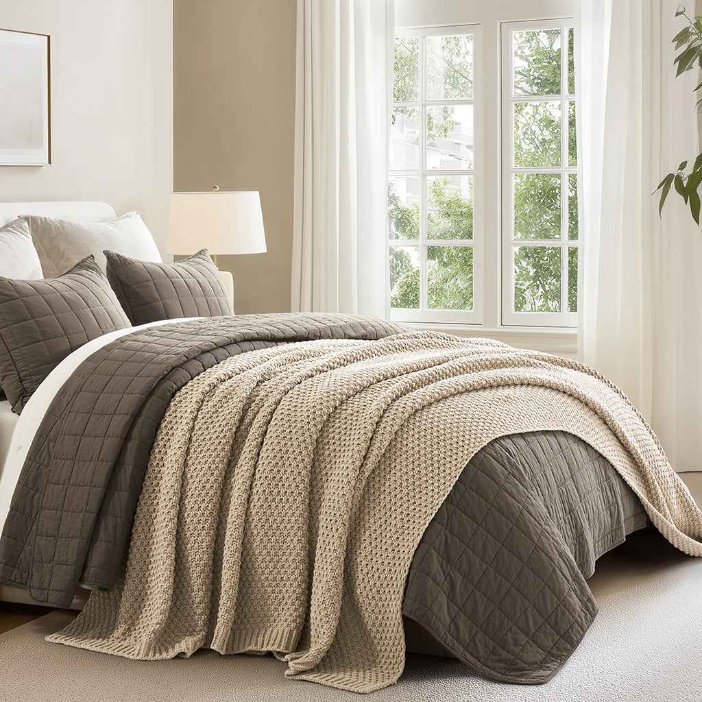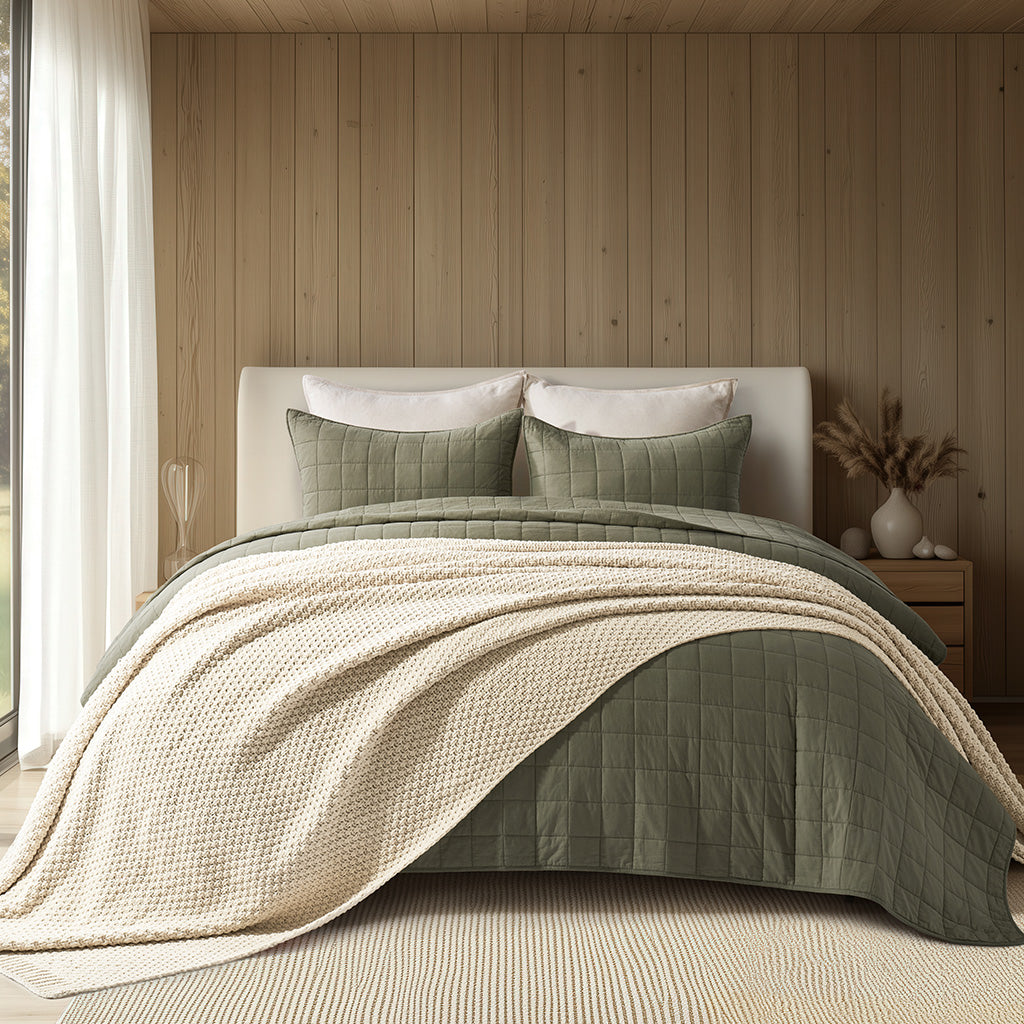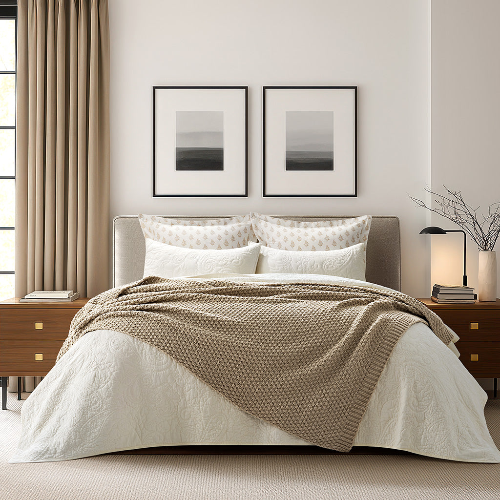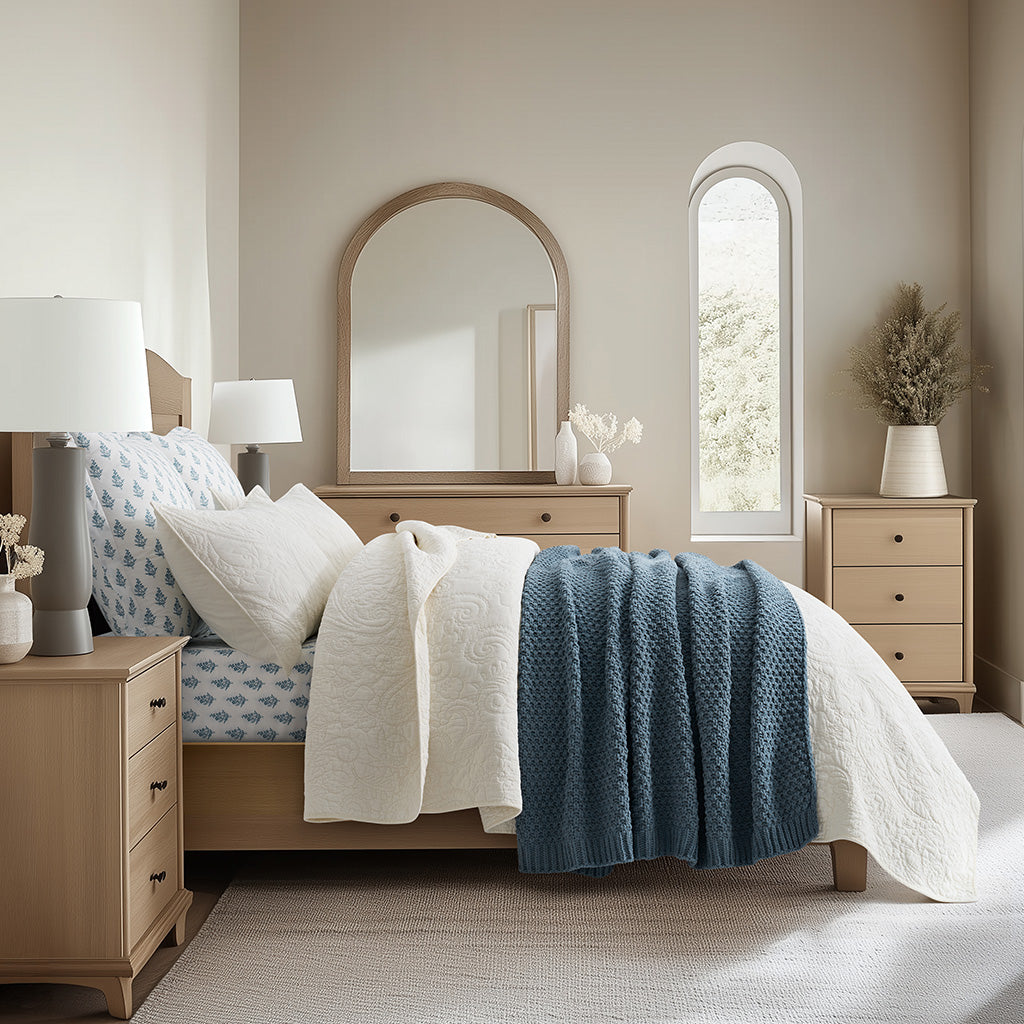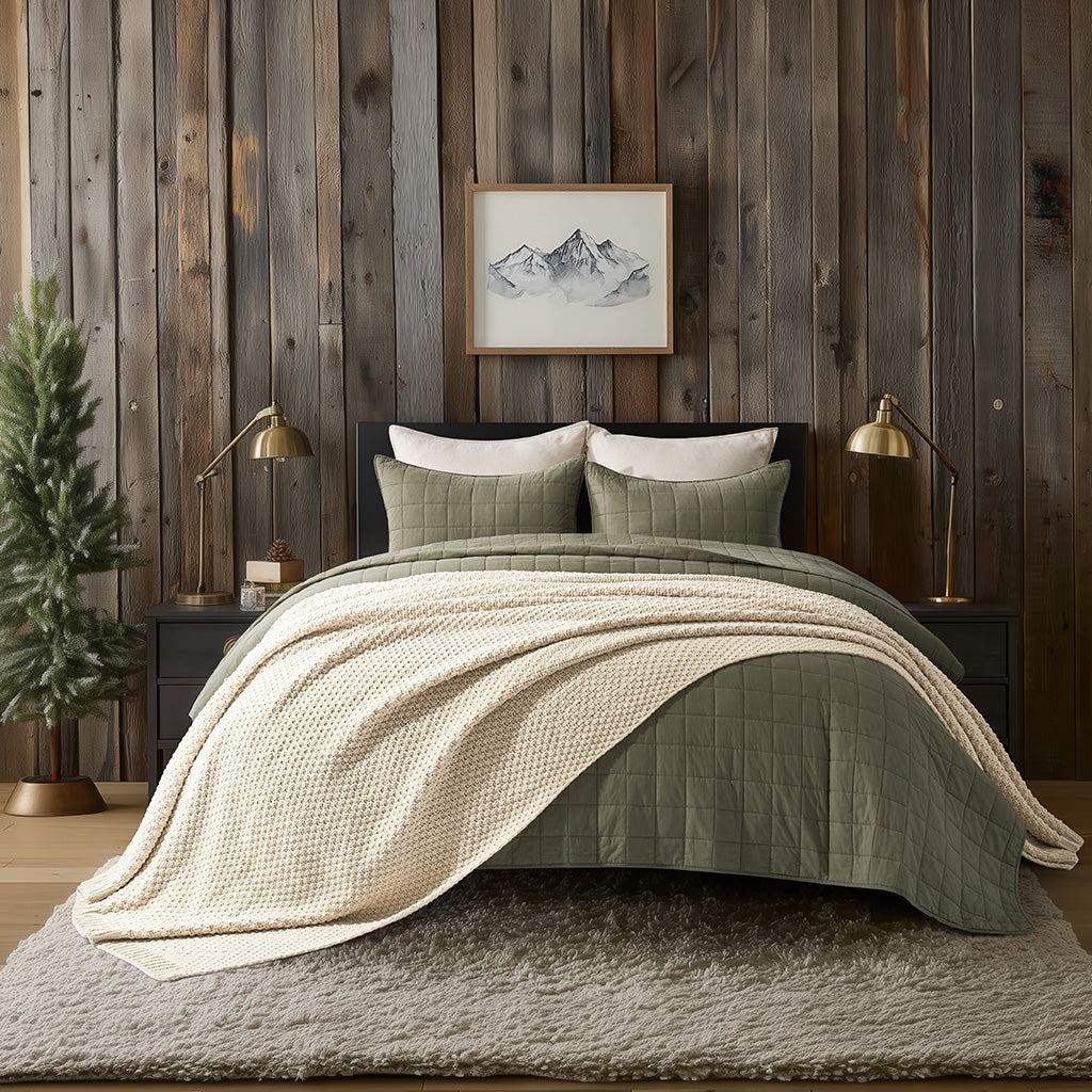 - Crafted with intricate moss stitching for a cozy yet elegant texture.