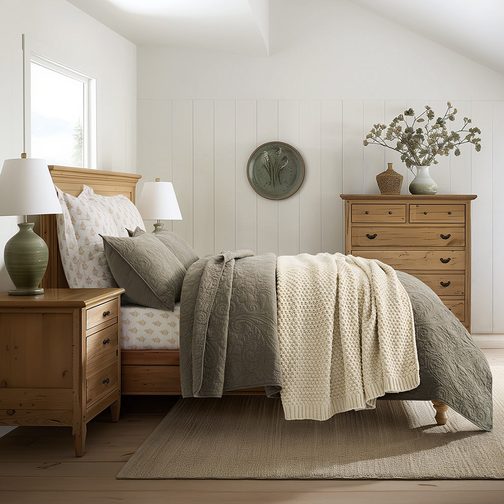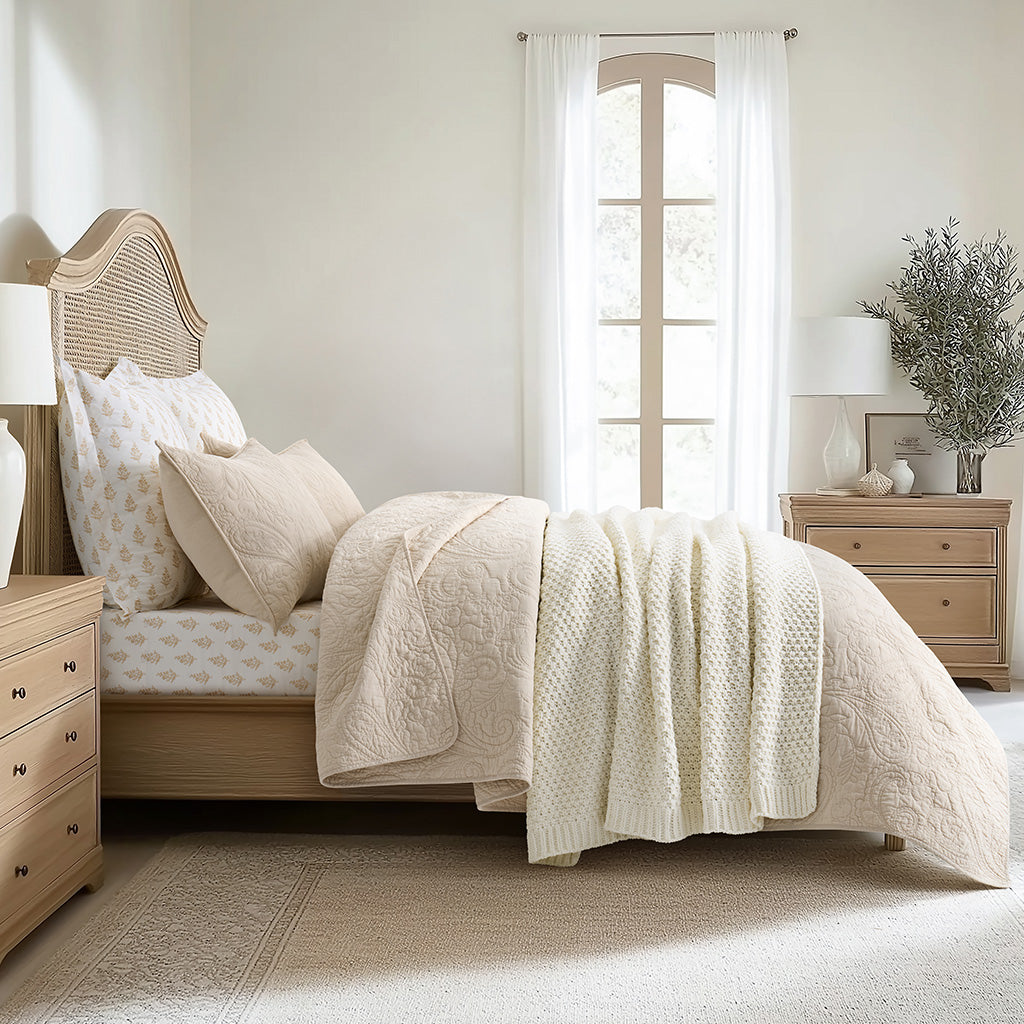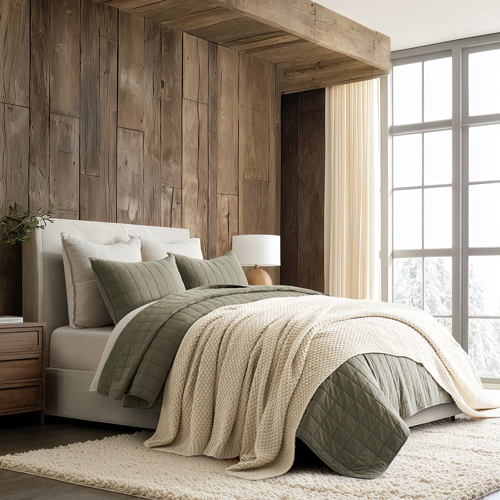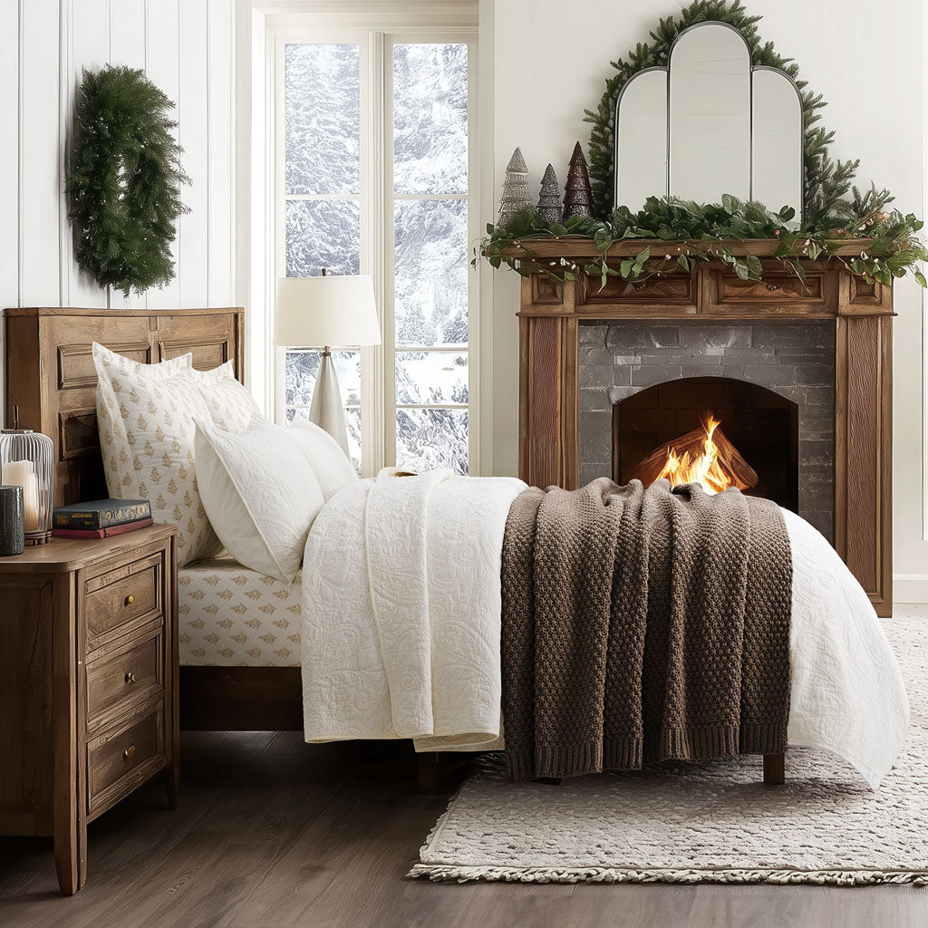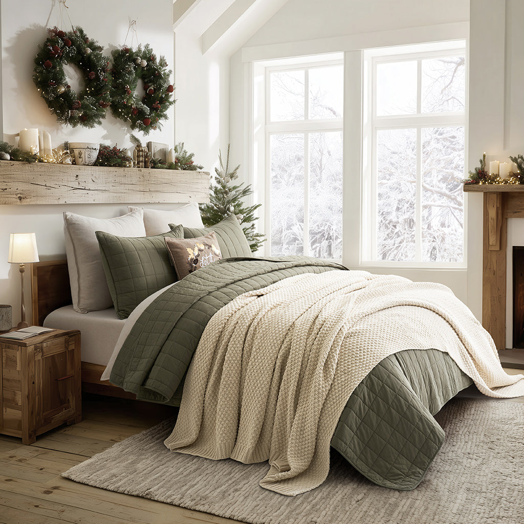 - Crafted with intricate moss stitching for a cozy yet elegant texture.